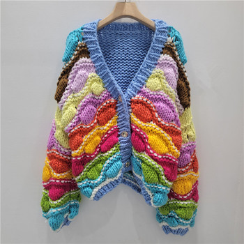 2025 נשים סריגה מחט עבה מחט יד-כדור מנוגד צבע ניגודיות יותר בגודל V-הצוואר רופף