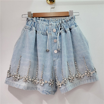 Kadınlar Vintage yüksek kalite kadın kot sokak giyim trendi elastik bel elmas Denim şort