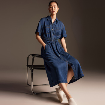 HighWomen kısa kollu uzun pamuklu tencel jean denim elbise