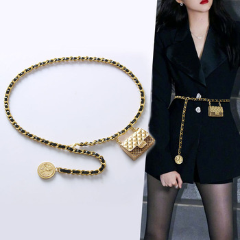 2025 Phong Cách Thời Trang Thắt Lưng Dây Chuyền Vàng Cho Phụ Nữ Ăn Mặc Nhỏ Mini Kim Loại Túi Trang Trí Eo Mỏng Của Phụ Nữ Có Thể Điều Chỉnh Vành Đai